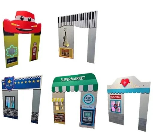 اتاقک مشاغل چوبی فانتزی یکی دیگر از ست مشاِغل کودک میباشد اتاقک مشاغل چوبی فانتزی فضایی مناسب و ایمن جهت تعامل و محیطی خلاقانه جهت رشد مهارت اجتماعی کودک است. اتاقک مشاغل چوبی فانتزی بهترین راه برای آشنایی کودک با مشاغل مختلف و تجربه نقش های گوناگون در جامعه است. اتاقک مشاغل چوبی فانتزی با متریال درجه یک و مقاوم ، امنیت کودک را هنگام بازی تامین میکند.اتاقک چوبی مشاغل فانتزی با نوار ال ای دی نورپردازی شده و با ویترین و پنجره زیبایی بیشتری به خود گرفته است.