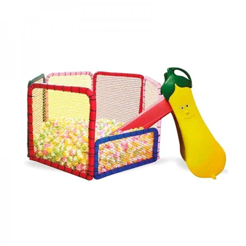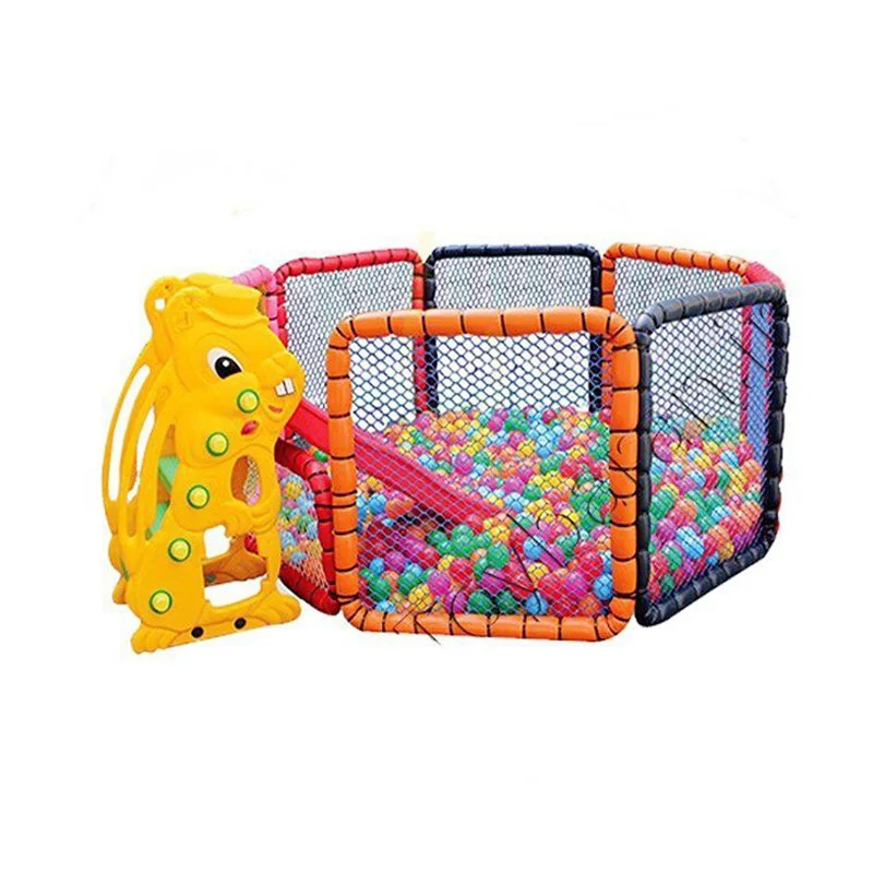 استخر توپ کودک نرده ای از جنس پلی اتیلن بوده و در بسته های معمولا 6 ضلعی میباشد و بسته به نیاز میتوان افزایش داد تعداد لت های استخر توپ رو قابل افزایش میباشد و میشود فضای بیشتری بهش اختصاص داد.و در دو نوع نیم لت و لت بزرگ میشه داد.استخر توپ محیطی امن برای بازی کودکان تا 5 سال است .استخر توپ کودک 6 ضلعی فضای تقریبی 1.5 متر را برای بازی در اختیار کودک قرار میدهد. همچنین با پر کردن این استخر از توپ رنگی پلاستیکی یک فضای بازی مهیج برای کودکان ایجاد می شود.