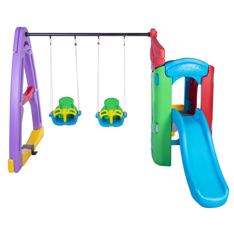 - شامل دو تاب با پشتی محافظ است که از افتادن کودک شما جلوگیری میکند.