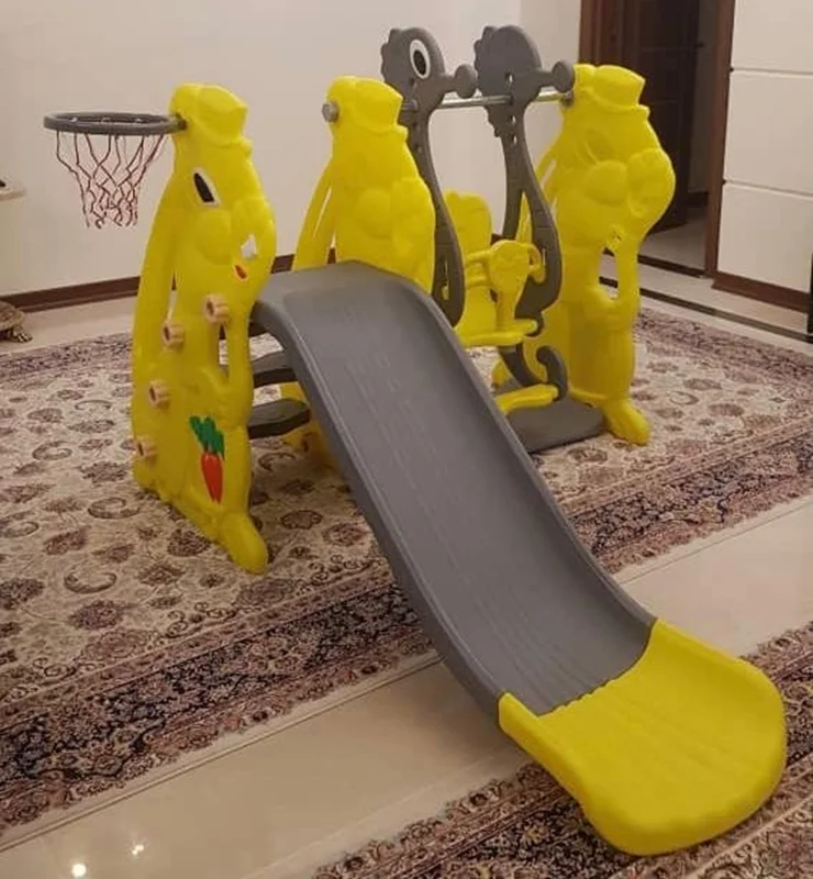 پر فروش ترین مجموعه خانگی تاب و سرسره و حلقه بسکتبال سنجاب از جنس پلی اتیلن بوده و مناسب کودکان 1.5 سال به بالا میباشد.
