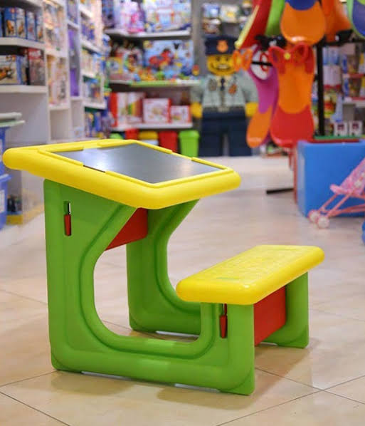 این میز و صندلی تک نفر برای استفاده در مهد کودک و خصوصا پیش دبستانی بسیار مناسب و کاربردی است.رویه این میز تحریر به صورت تخته سیاه است که به راحتی جدا می شود و زیر آن فضایی برای قراردادن مداد، پاک کن، قیچی، چسب است. جنس بخش تخته سیاه آن از فیبر است و ضخامت کمی دارد.