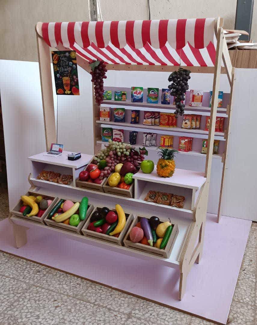 وسایلی که همراه هایپرمارکت چوبی کودک می باشند شامل 10 عدد میوه و 10 جعبه اکسسوری برای قرار دادن در هایپرمارکت چوبی کودک . همچنین شما می توانید به این مجموعه اسباب بازی های بیشتری اضافه کنید تا تعامل بیشتر و بازی جذاب تر شود.