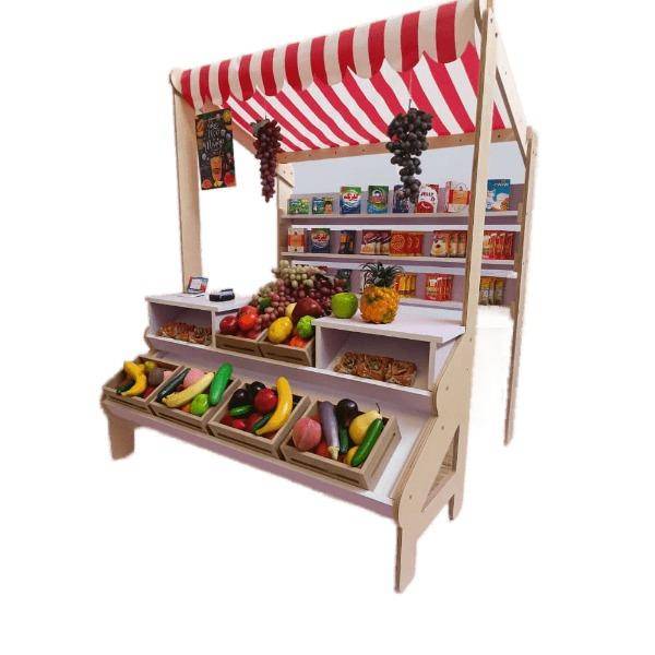 هایپر مارکت کودک یکی دیگر از ست مشاِغل کودک میباشد که شامل یک استند با 5 جعبه میوه در قسمت جلویی و یک قفسه در قسمت داخلی دارد و توسط یک سقف پارچه ای نیز قسمت جلویی و پشتی به هم متصل است همچنین یک قسمت نیز برای حسابداری یا همان دخل با پوز فروشگاه طراحی شده است که همگی یک هایپر مارکت را تشکیل می دهد و کودکان می توانند با آن بازی کنند. هایپر مارکت چوبی کودک در خانه مشاغل و خانه بازی کودک بسیار کاربردی است و باعث تعامل کودکان با هم می شود و علاوه بر یادگیری کودک از مشاغل مختلف , مهارت های مختلفی را نیز کودک در حین بازی کردن می آموزد.