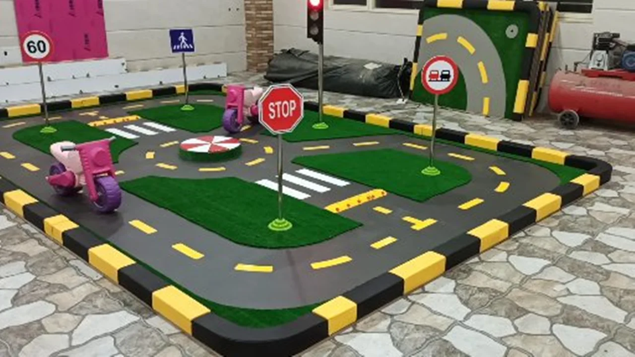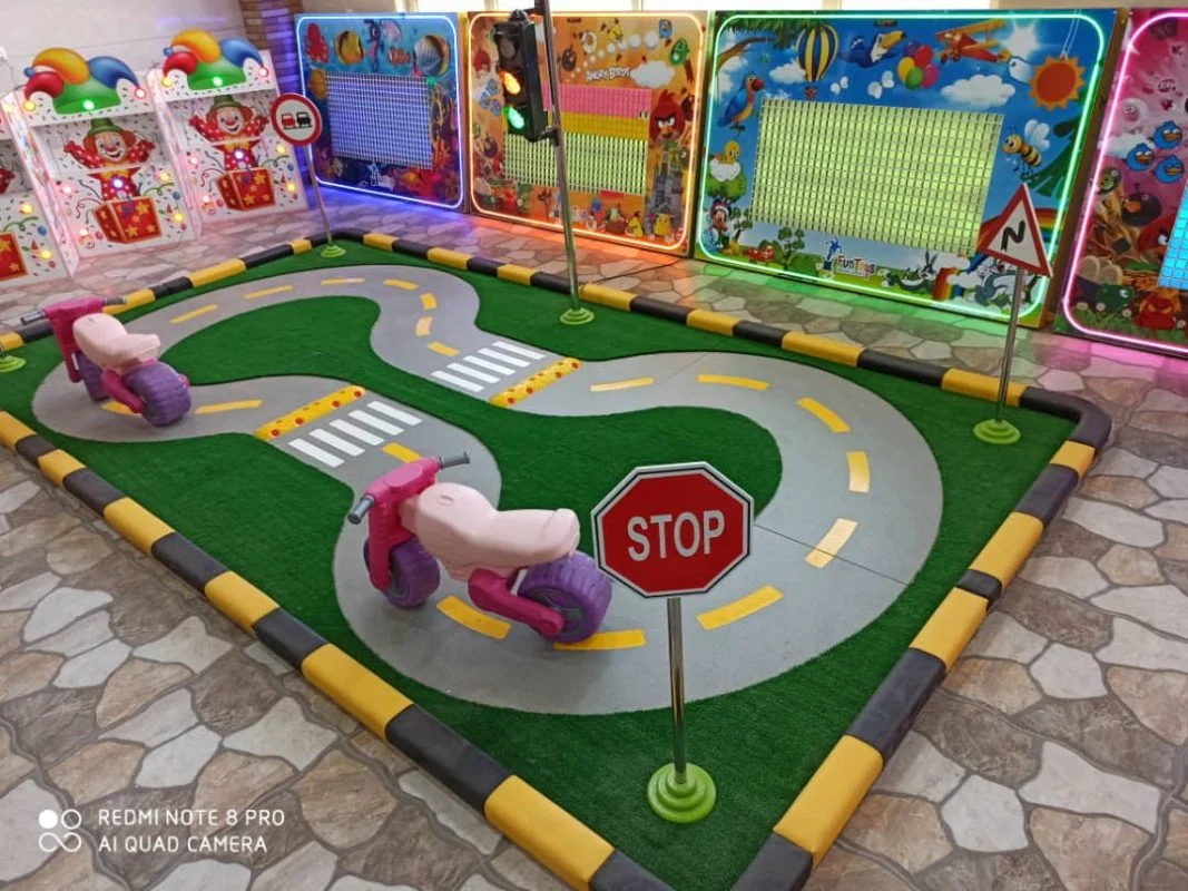 پیست ترافیک یا ماشین بازی یکی از بخش های جذاب خانه بازی و مهد کودک است که نوع طراحی می توانید زیبایی آن را دو چندان کند.پیست ماشین، ماشین پلاسما، علائم راهنمایی و رانندگی، سوت پلیس، کلاه پلیس، پمپ بنزین چوبی، بلوار و میدان، همه و همه در کنار هم یک پکیج کامل برای راه اندازی و تأسیس خانه بازی و شهربازی شماست